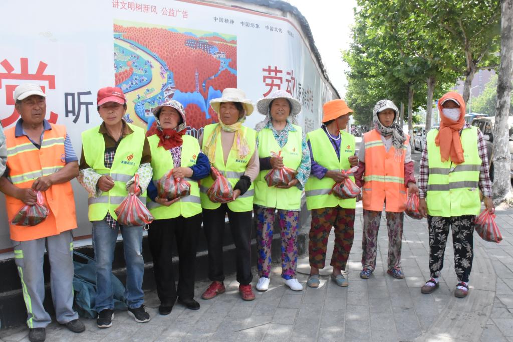 5月30日上午,测绘与海洋信息学院学生第一、第二党支部携手郁洲街道党支部开展“粽叶飘香寄温情,奉献互助显青春”主题党日活动。学生党支部书记周小晓、张滨铄和郁洲街道党政办主任刘军一起,带领学生党员手提粽子,沿着建设路和科苑路为 “城市美容师”——坚守岗位、辛苦劳作的环卫工人送上暖暖的“粽”情、满满的“粽”意,送上节日的祝福。