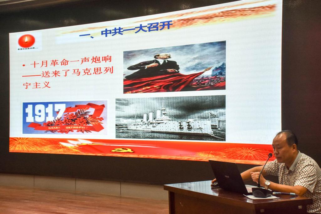 冯凤麟首先对中共一大召开的背景进行了介绍。在19世纪40年代,以鸦片战争为开端,中国在清王朝腐败的统治下,逐渐沦为半殖民地半封建社会,为此一场场爱国图存的救国运动陆续展开。太平天国运动,辛亥革命的失败并没有让中国人就此消沉,随着十月革命的胜利,中国迎来了马克思列宁主义。