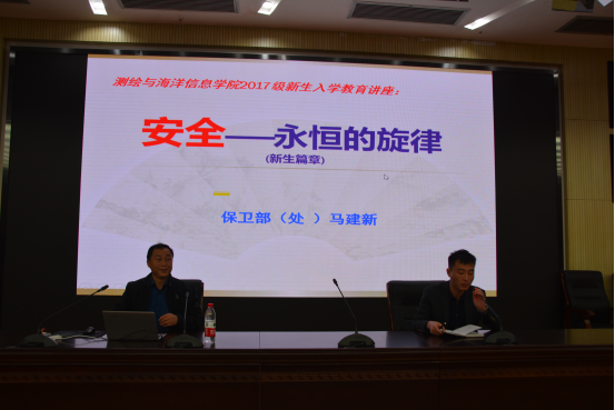 为使2017级新生拥有更好的校园生活,积极创建平安校园,维护大学新生人身、财产安全,提高大学新生的安全防范意识与自我保护能力,2017年10月20日下午,测绘与海洋信息学院于黄海厅举行了2017级新生入学安全教育讲座。校保卫处处长马建新作专题讲座。