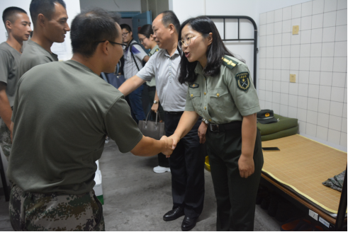9月6日晚,测绘与海洋信息学院党委书记冯凤麟,党委副书记、副院长王晶一行来到承接2018级学生军训教官宿舍,对教官表示慰问和感谢。