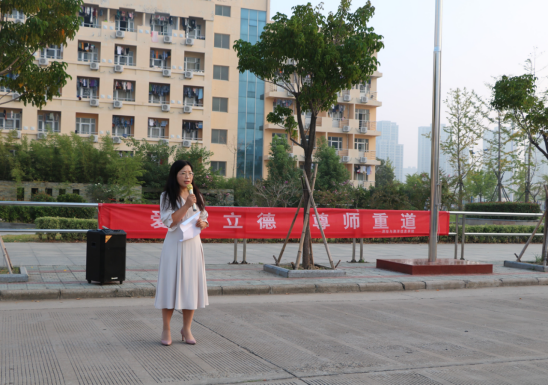 王晶发表主题讲话。她指出,本次升旗仪式不仅仅是为了庆祝即将到来的教师节和国庆节,更是为了让同学们在新学期里尽快“收心归位”,继续追梦。她表示作为新时代的青年学生,要能同祖国人民共进退,立远大的志向,要有浓重的家国情怀,要增强责任担当。新的学期,继续不忘初心、牢记使命,砥砺前行。随后学生代表罗梓文以“疾学在于尊师”为主题做国旗下发言,他向同学们讲述了尊师的价值和意义,在教师节即将到来之际,他号召同学们尊重老师从认真学习做起,从生活中的点滴做起。