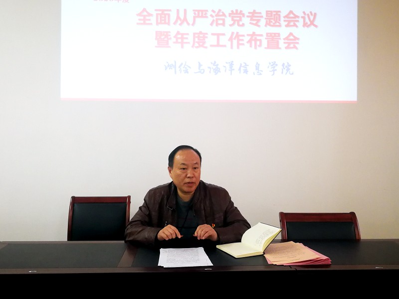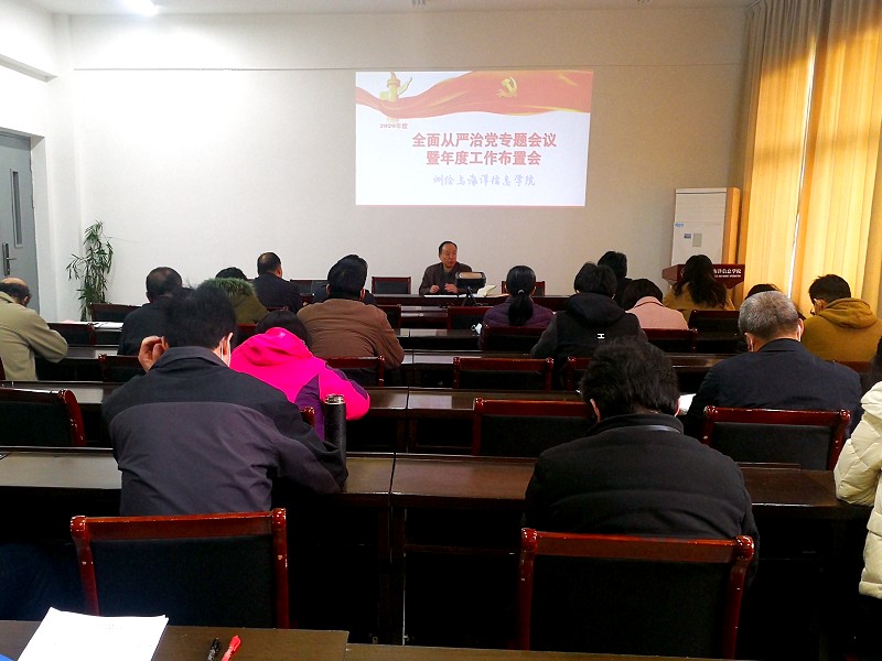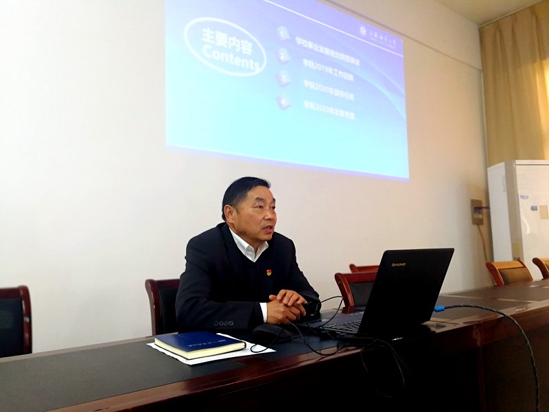 4月8日,学院召开全面从严治党工作会议暨年度工作布置会。院长焦明连为全院教职工解读了《江苏海洋大学事业发展规划纲要》(2020-2025年),结合学院2020年度党政工作要点对主要目标任务进行布置。