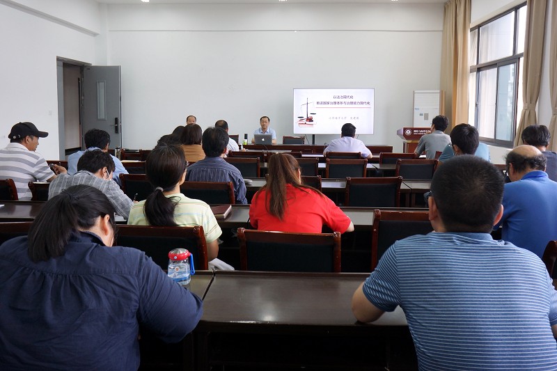 6月24日下午,学院举行教职工政治理论学习会,邀请校宣讲团成员、法律与公共管理学院吴建国博士做“以法治现代化推进国家治理体系与治理能力现代化”专题辅导报告,党委书记冯凤麟主持。