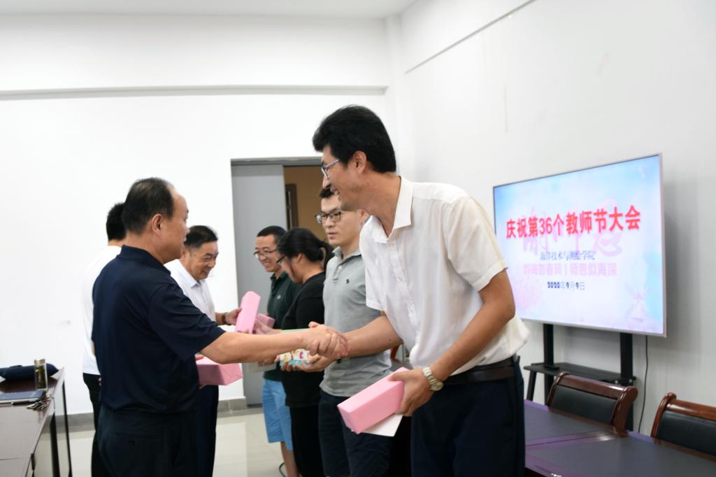 简约的庆祝仪式,浓厚的师生情谊,让老师们倍感温暖和自豪。老教师周立教授在发言中说:黑发积霜织日月,粉笔无言写春秋。我们为从事的测天绘地探海、朔造未来的教育事业而自豪,为身为一名江海大教师目睹并实践了她的美丽蜕变而骄傲。今年刚入职的新教师亓晓彤博士说:作为年轻教师,要向身边的同事学习,还要学习全国教师的先进经验,站稳讲台,用严谨的科研态度和刻苦的学习精神给学生潜移默化的影响,要坚定“师业”,唤醒“师爱”,提升“师能”,砥砺前行。
