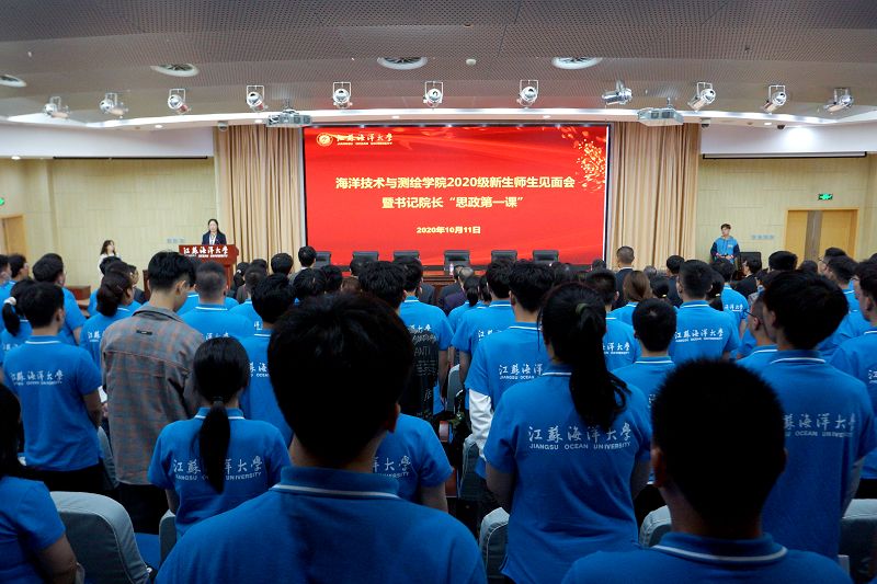 海洋技术、测绘工程和地理信息三个系以及党政办、教学科研办、学工办的老师集体亮相,用简洁生动的语言介绍部门、祝福新生、勉励学子,拉近了师生距离,增进了彼此了解。随后,全体新生分班级集体起立行拜师礼,致谢学院,感谢老师,用整齐划一、铿锵有力的誓言,决心学好专业,拓展素质,回报父母、回报社会。