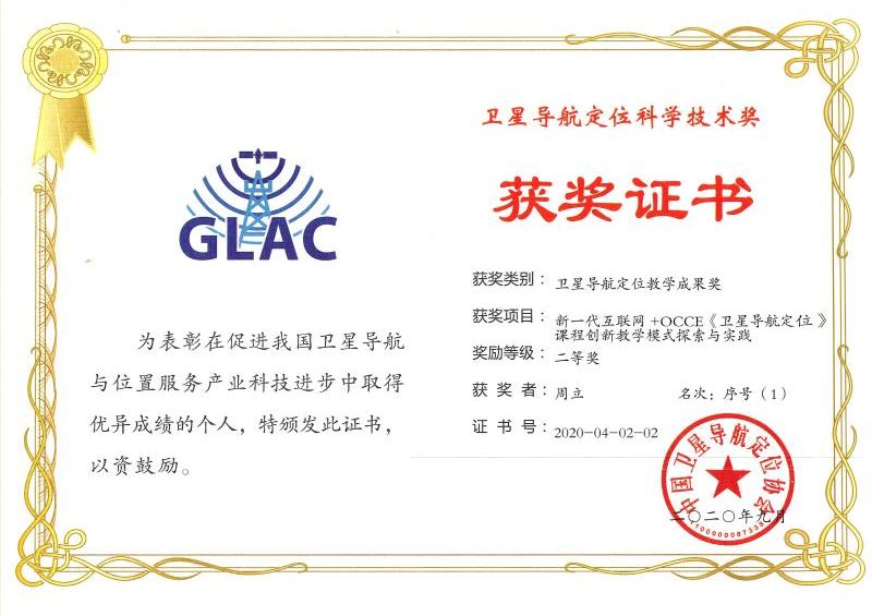 近日,由中国卫星导航定位协会组织评选的2020年卫星导航定位教学成果奖揭晓,我院院周立教授主持的“新一代互联网+OCCE《卫星导航定位》课程创新教学模式探索与实践”教学成果,荣获中国卫星导航定位协会2020年卫星导航定位教学成果二等奖。