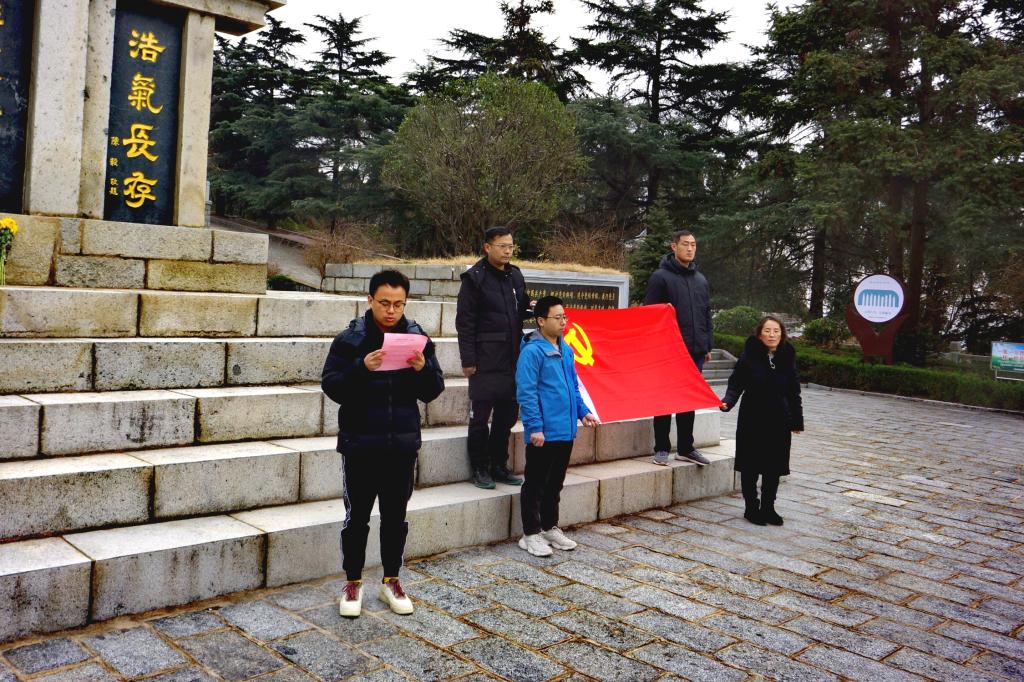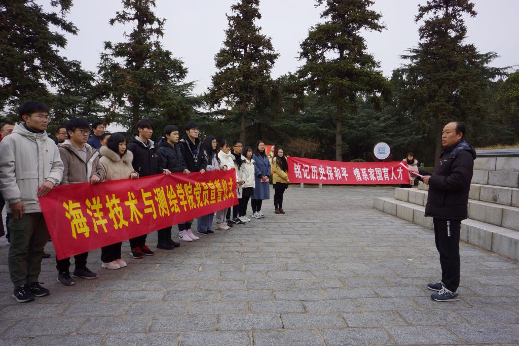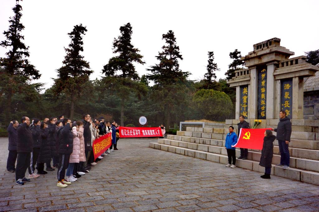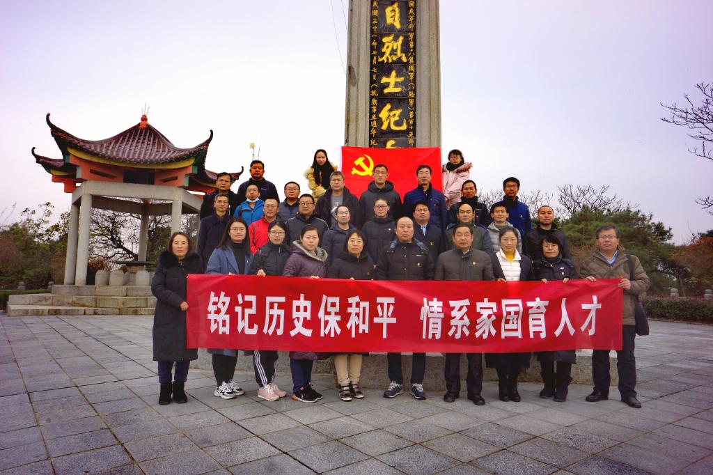 师生们首先来到国家级抗战纪念地——赣榆县抗日山举行党日活动,在“小沙东海战”烈士墓前举行了隆重的祭奠仪式,深切缅怀抗日战争中牺牲的革命烈士。在团委副书记金蓓蓓的带领下,全体党员举起右拳,面向鲜红的党旗,预备党员郑重入党宣誓,老党员重温了入党誓词。