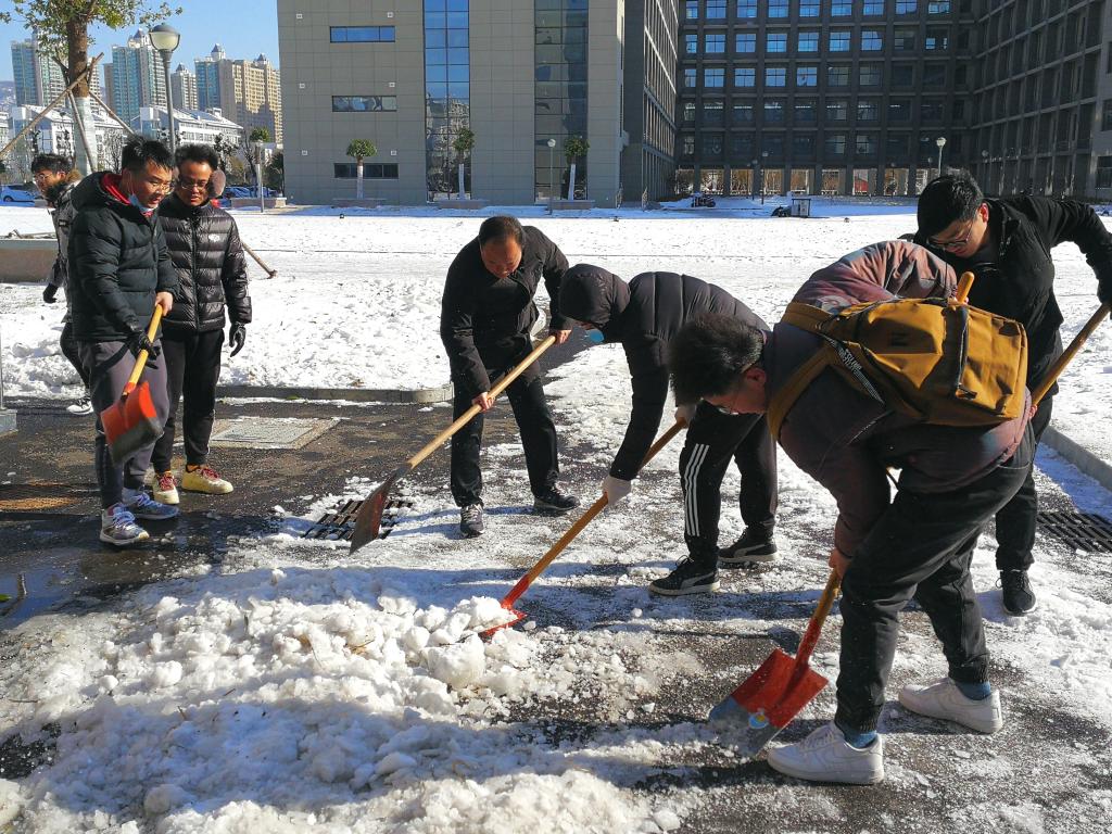 参加铲雪的党员纪同志开心的说道:“测绘楼周边安全了,卫生所周边安全了,会议中心周边安全了……劳动真的是最光荣的!”本次活动充分展现了党员先锋模范作用,培养了党员韧劲与毅力,增强了党组织的凝聚力。通过本次劳动,同学们不仅身体得到了锻炼,更在劳动中体验到辛苦自己方便他人的快乐。
