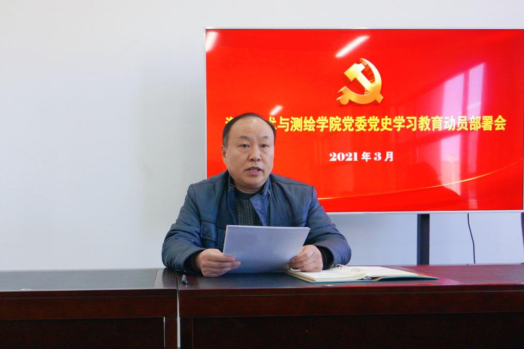 3月17日,学院党委召开党员大会,对党史学习教育进行部署安排,党委书记冯凤麟做动员讲话,党委副书记王晶主持。