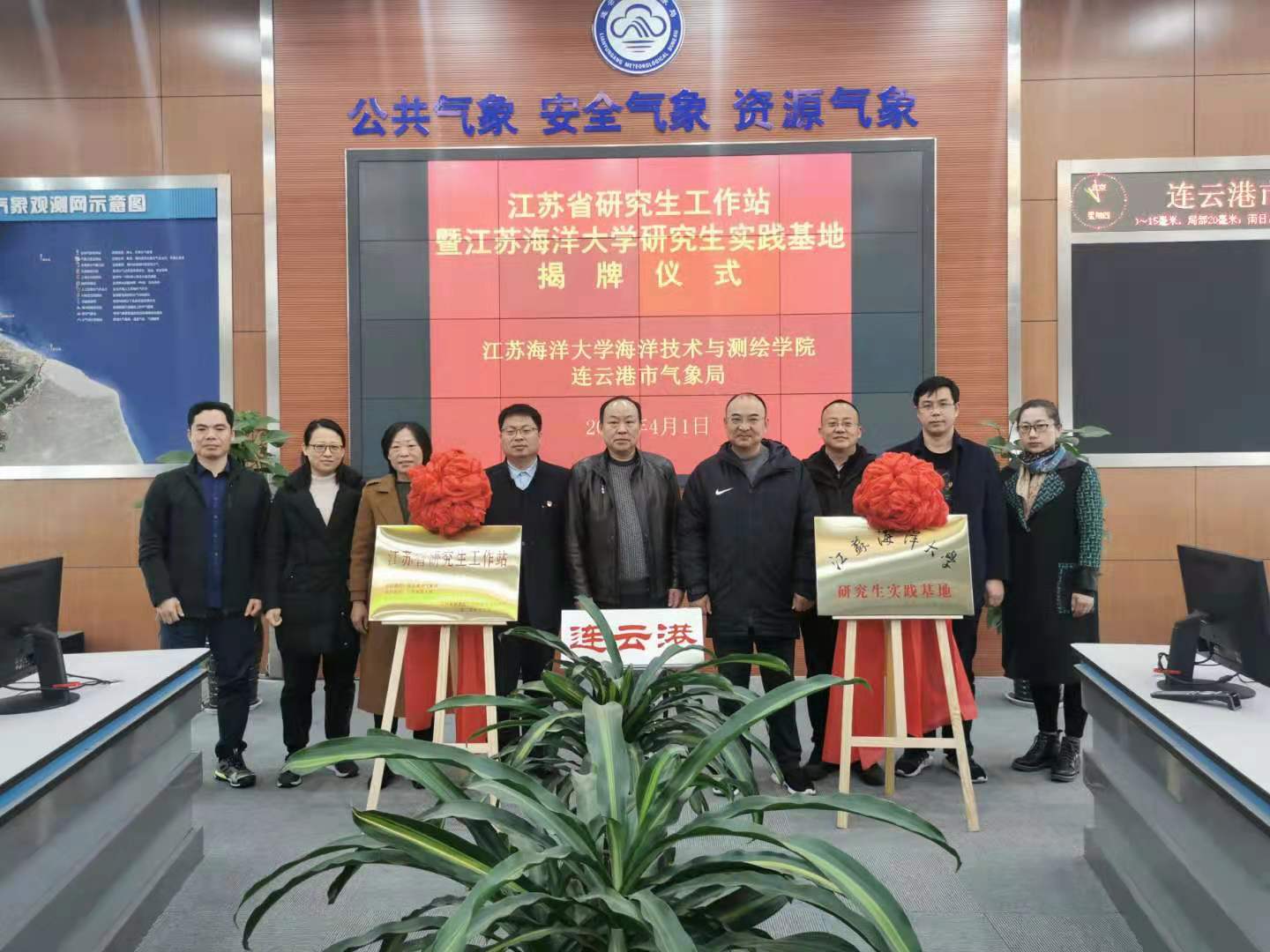4月1日,学院书记冯凤麟、副院长吕海滨、海洋技术系主任李玉赴连云港市气象局,参加了连云港市气象局省级研究生工作站暨研究生实践基地揭牌仪式,双方就政产学研合作进行了深入交流。连云港市气象局局长徐良谋、副局长陈飞、预报处处长王桂臣以及所有内设科室负责人参加会议。