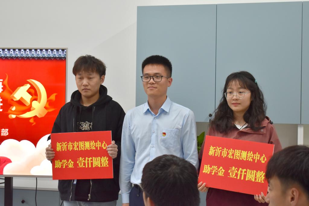 宏图测绘中心负责人周绪益还代表公司为两名品学兼优的困难生颁发了企业助学金。
