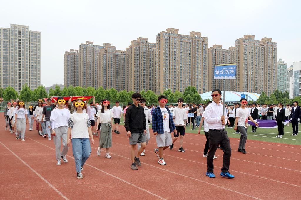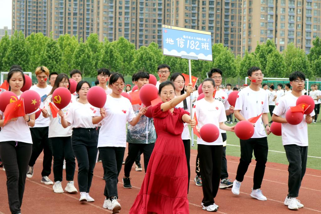 伴随着激昂的《运动员进行曲》,师生方阵迈着矫健的步伐依次入场。地信182班以党徽和党旗为元素精心设计了入场造型,表达了青年学子对党的感恩和崇敬之情;测绘182班的舞狮与舞蹈,将传统文化与现代审美相融合,让在场观众眼前一亮;海洋191班踏着欢快的旋律齐跳动感街舞,舞出了青春靓丽的风景线;最后,身着海洋蓝长裙的女教工和风度翩翩的男教工组成的教师方阵,在《火红的撒日朗》欢快的旋律中压轴登场,展示出立德树人、教书育人的精神风采,引得全体学生惊艳欢呼。