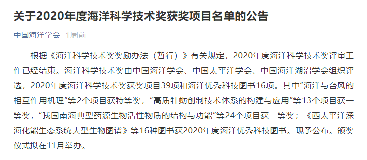 近日,经国家科学技术奖励工作办公室批准,由中国海洋学会、中国太平洋学会、中国海洋湖沼学会组织评选的“2020年度海洋科学技术奖” 正式公告,由我院周立教授主持的“智港口航道基础地理时空一体图共享服务关键技术”项目获得二等奖。