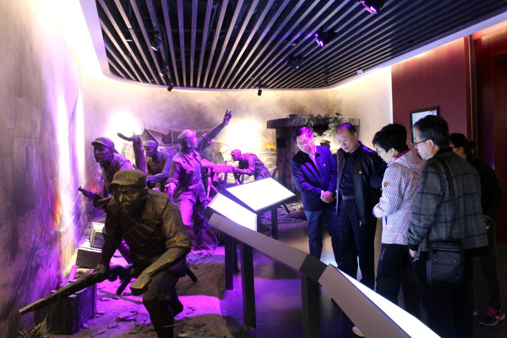在射阳县党性教育基地,全体党员和老师跟随着讲解员,从一幅巨大的幅青铜色浮雕前开启学习教育之旅。走进“红色记忆”第一展厅,大家全方位触摸百年党史,学习传承伟大的建党精神;在“从严治党”第二展厅,一件件触目惊心的案例、一个个勤政清廉的典范、一段段悔恨交加的独白给大家带来心灵的震撼和洗礼;在“庄严宣誓”展厅,冯凤麟带领全体党员面向鲜红的党旗,重温入党誓词。展厅内丰富的图片、影像、实物和VR体验等多种媒体手段,给全体党员老师一次生动的党性教育,留下了深刻的党史记忆。同时,也对射阳县的革命建设史和经济社会发展有了更加直观的了解。