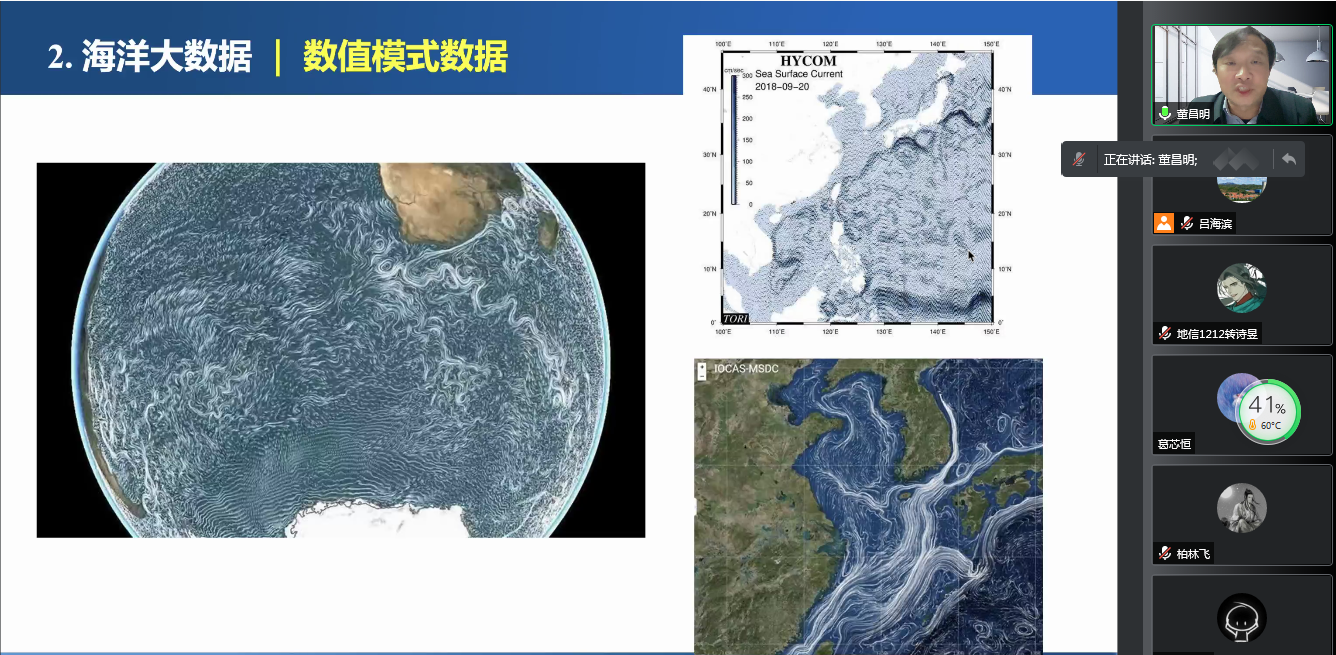11月21日晚上,南京信息工程大学董昌明教授应邀在腾讯会议平台为师生做了题为“迎接大数据驱动的人工智能海洋学的新时代”的学术报告。报告会由副院长吕海滨主持,线上线下参会师生共计120余人聆听了报告。