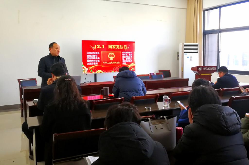 12月4日,第八个“国家宪法日”。按照省教育厅和学校党委“宪法宣传周”的统一部署,近日,学院党委围绕“以习近平法治思想为指引 坚定不移走中国特色社会主义法治道路”这一主题,精心谋划、周密安排,开展了形式多样的宪法宣传和学习教育活动。