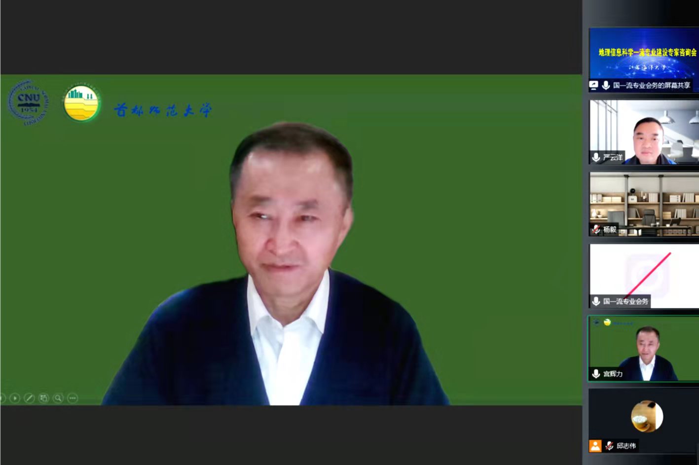 会议邀请了原首都师范大学校长、欧亚科学院院士、俄罗斯工程院和俄罗斯自然科学院外籍院士、博士生导师宫辉力教授和中国地震局王书民研究员担任线上咨询专家。校教务处处长乔斌以及海洋技术与测绘学院党委书记冯凤麟、院长孙佳龙、副院长吕海滨、副院长成印河、地理信息科学专业人负责人费鲜芸和系副主任邱志伟参加了会议。