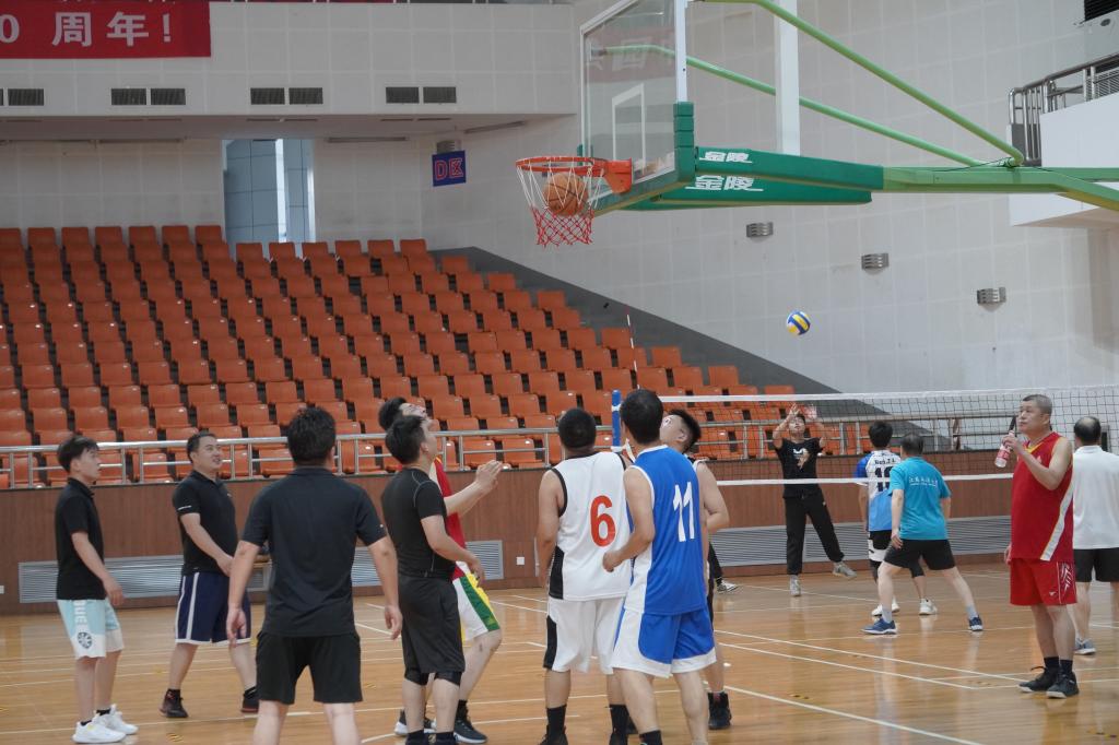 友谊赛共设置篮球赛、气排球赛和羽毛球赛,一声哨响,三场比赛同时开始。球场上,毕业班学生队、教职工队与华测校友队个个精神饱满,本着“情谊第一,比赛第二”的原则,展示各自不俗的实力。首先将目光转向篮球场上,一个个华丽的转身、漂亮的传球、快速的突破、精准的三分,迎来了观众的加油呐喊和声声助威。通过不断轮换,三支队伍各打满四节,最终2022届毕业生队以积分第一摘得桂冠,教职工队和华测校友队分获亚军和季军。