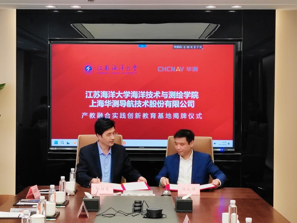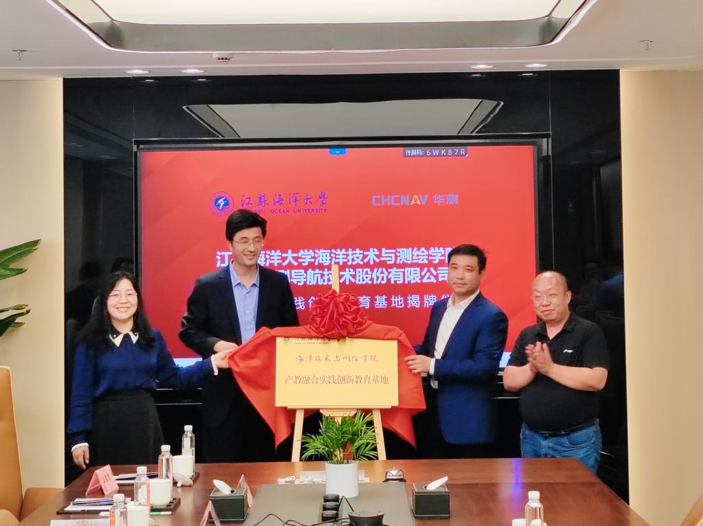 4月16日,在华测导航技术有限公司上海总部的时空智能展厅,公司副总裁胡炜先生为大家详细介绍了上海华测导航技术有限公司技术创新和主要产品应用等情况,公司人力资源总监兼高级副总裁沈礼伟陪同。会后,王晶、孙佳龙和胡炜、沈礼伟共同为“江苏海洋大学海洋技术与测绘学院产教融合实践创新教育基地”揭牌。