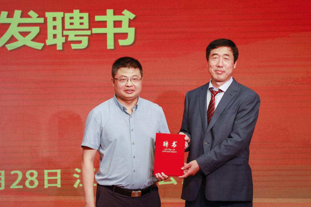 副校长朱国军为首届副会长颁发聘书 校友总会秘书长孙盛杰为首届秘书长、副秘书长颁发聘书