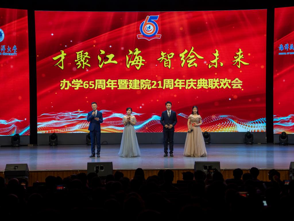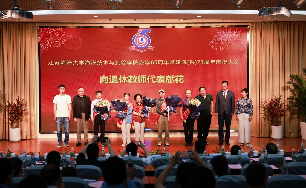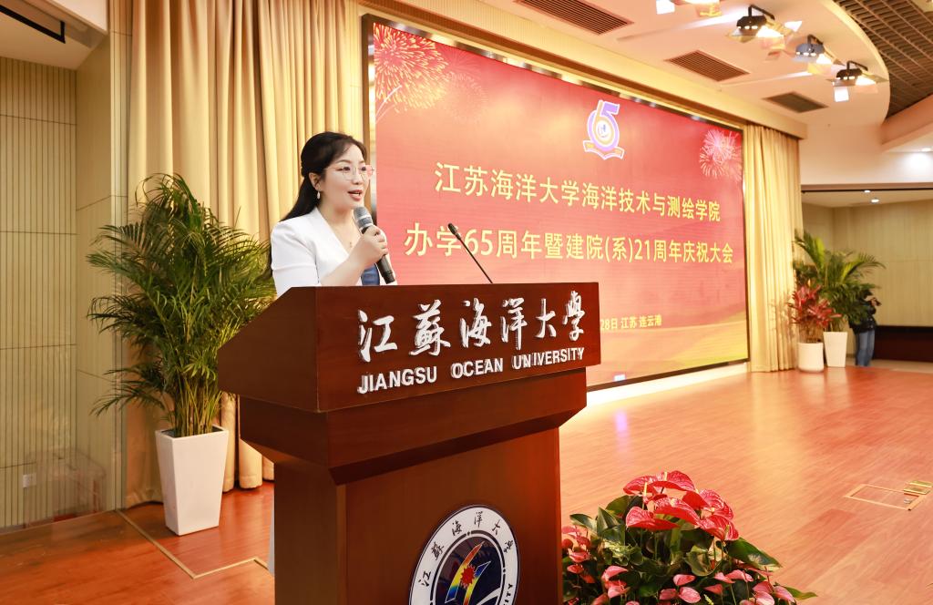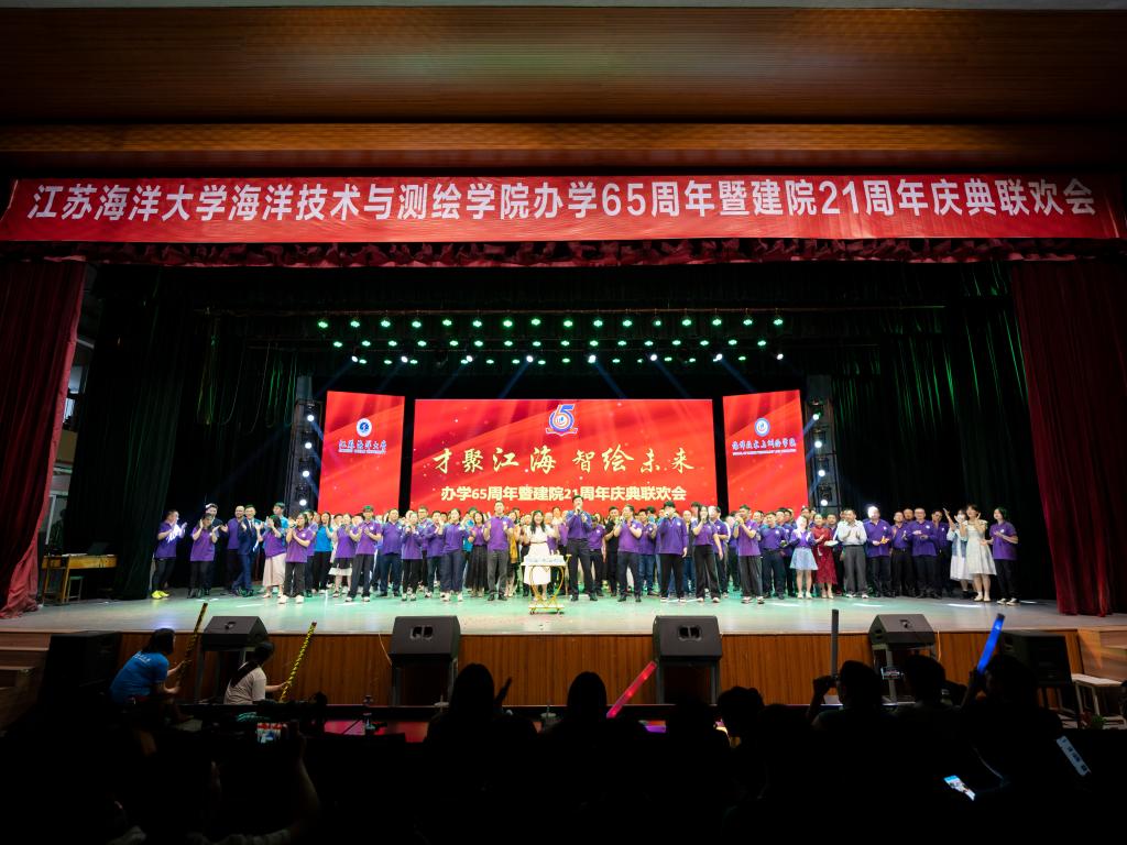 5月28日,静思湖畔绿树成荫,榴花红艳,测绘楼前鲜花绽放,“六十五年赓续传承精业笃行,二十一载勤耕不辍谱写芳华”“测天绘地逐梦深蓝,担当使命星耀江海”等横幅标语鲜红醒目,校会议中心黄海厅内流光溢彩,学院办学65周年暨建院(系)21周年庆祝大会隆重举行。江苏海洋大学校长宁晓明、原化工高等专科学院党委副书记刘平昌、原化工高等专科学校副校长杨绍华出席大会。友好高校兄弟学院领导、战略合作单位嘉宾、学校各职能部门和各兄弟学院领导以及海洋技术与测绘学院海内外校友、现任院领导、老领导、老教师、师生代表等共300余人欢聚一堂,共享荣耀盛典。学院党委书记王晶主持庆祝仪式。