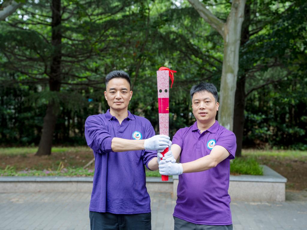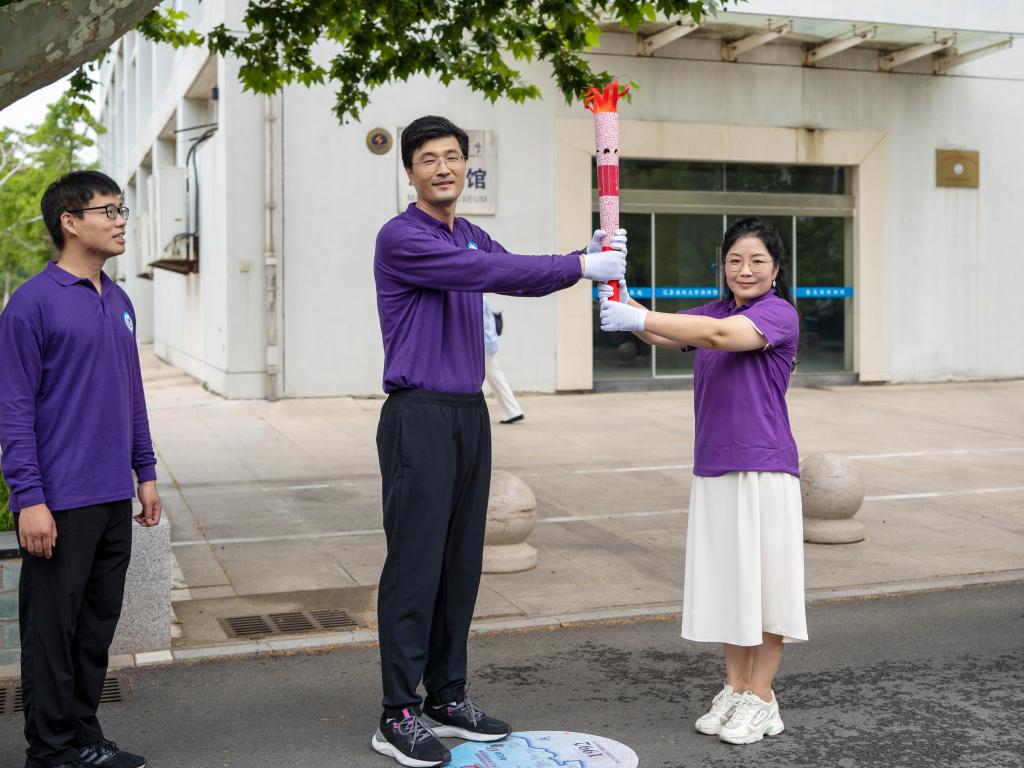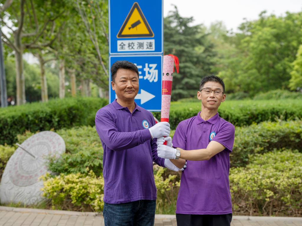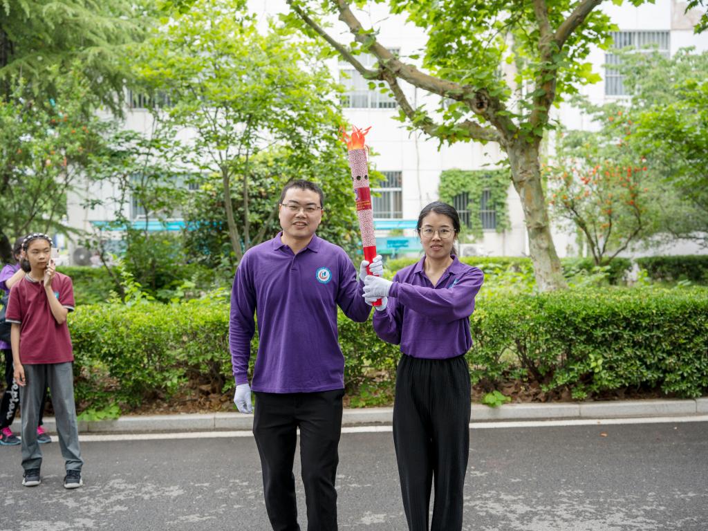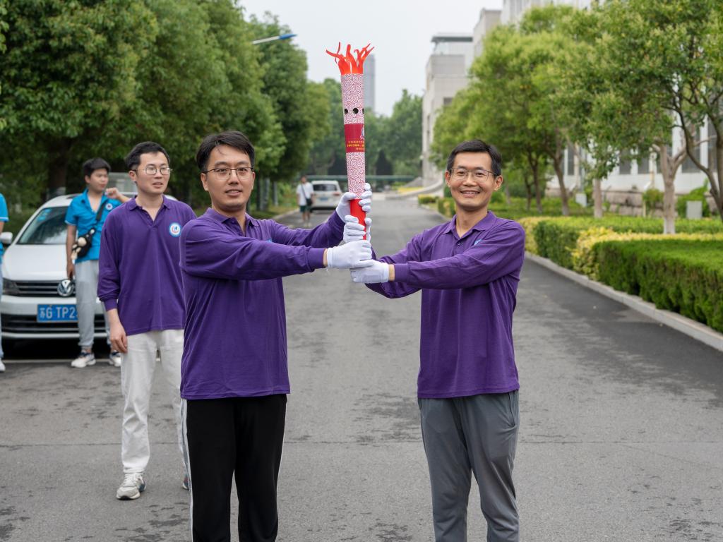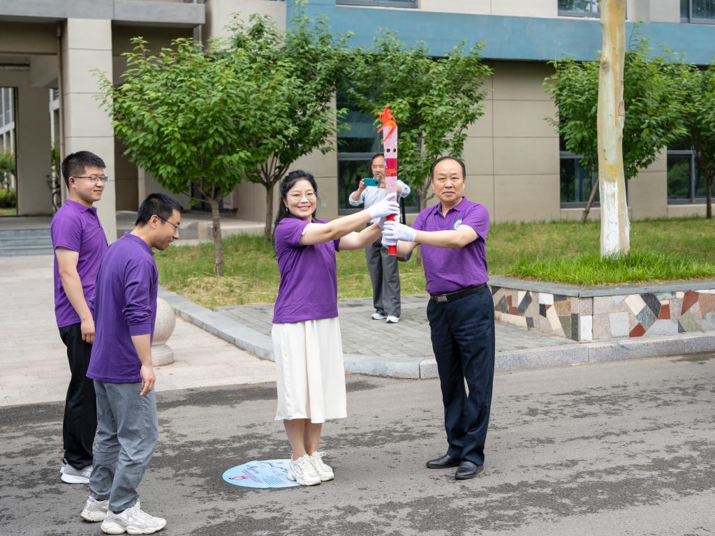校党委副书记李梅英和焦明连教授交接第一棒火炬