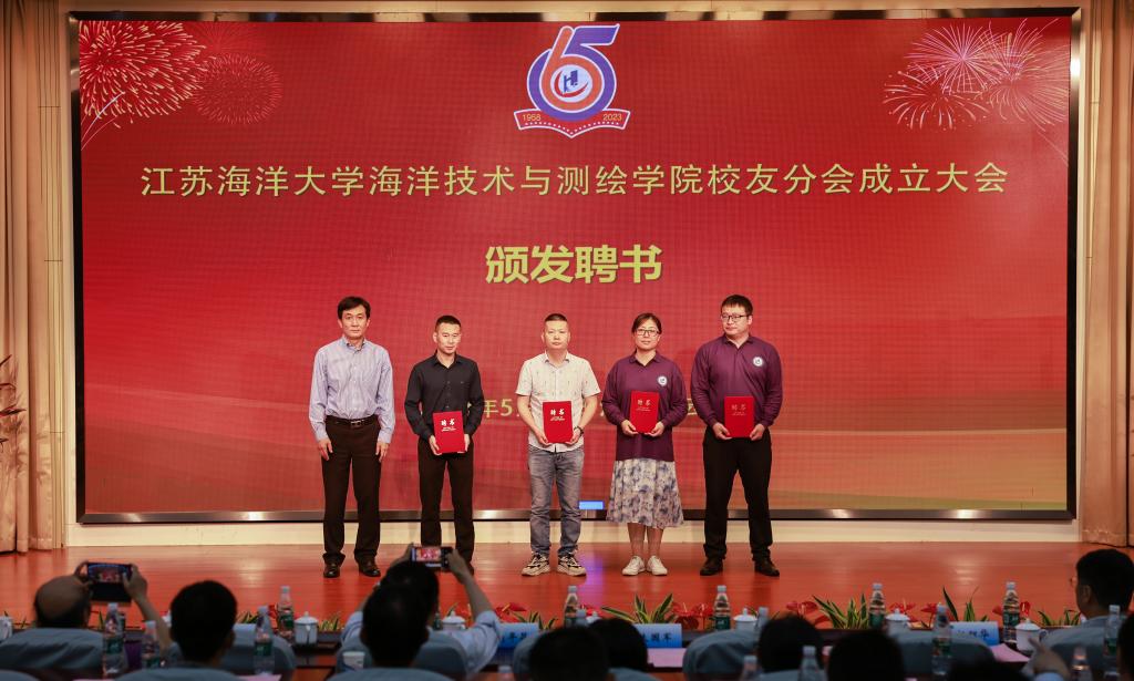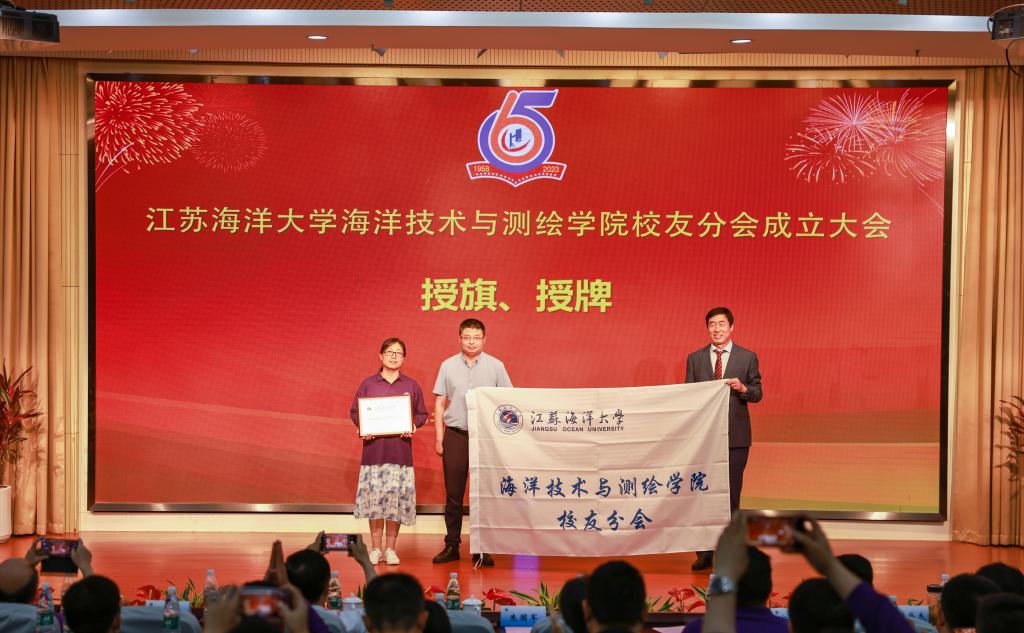 校友分会筹委会成员王晓新和沈涌分别介绍了海洋技术与测绘学院校友分会筹备情况和校友会章程及组织架构。会议选举通过了海洋技术与测绘学院校友分会首任会长、顾问、常务副会长、秘书长、常务副秘书长、副秘书长名单。在全体参会人员的见证下,副校长朱国军为海洋技术与测绘学院校友分会授旗、授牌,并为首届校友分会会长、副会长颁发了聘书。校友总会秘书长孙盛杰为校友分会首届秘书长、副秘书长颁发了聘书。