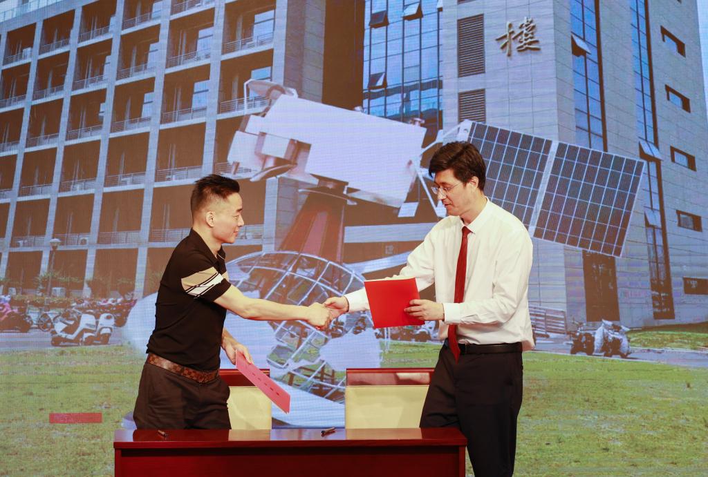 庆典前夕,学院收到武汉大学、中南大学、中国矿业大学、上海海洋大学、广东海洋大学等20余所友好高校的兄弟学院和30余家产教融合企事业单位发来的贺信贺电,高度评价学院数十年来的办学成就,工作人员宣读了武汉大学测绘学院的贺信。土木与港海工程学院党委书记王改红代表兄弟学院致贺词,文法学院院长吴明忠赠送“量海观天”祝贺牌匾。大会最后,举行了学院地标捐赠仪式,孙佳龙与校友代表刘小进签署了捐赠协议。