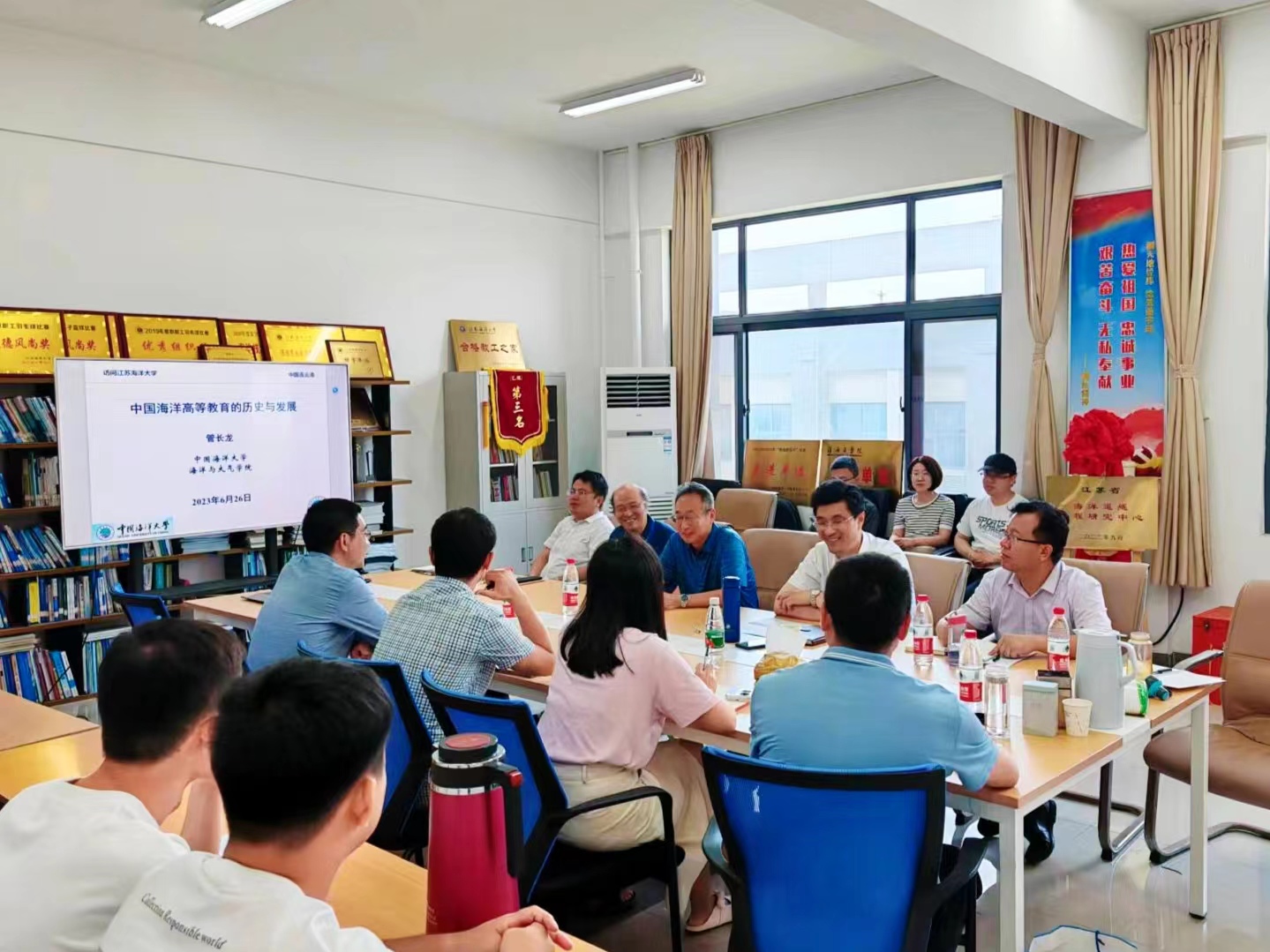 6月27日下午中国海洋大学管长龙教授应邀为我院师生做了题为“中国海洋高等教育的历史与发展”报告。院长孙佳龙主持报告会。副院长吕海滨、成印河、各系主任和党支部书记及相关师生参加报告会。