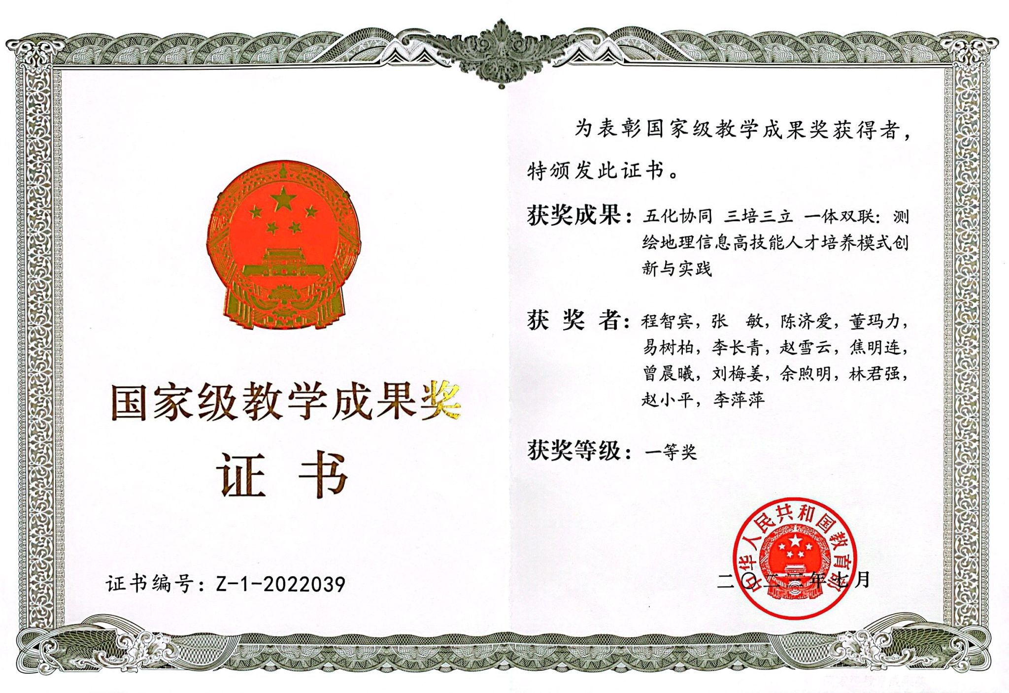 今年7月,教育部发布了2022年国家级教学成果奖获奖项目名单,近日颁发了奖牌和证书。我院焦明连教授参与完成的《五化协同三培三立 一体双联:测绘地理信息高技能人才培养模式创新与实践》荣获2022年国家级教学成果奖一等奖。这是我国测绘地理信息领域首次获此殊荣,也是我校在国家级教学成果奖项上的又一次重大突破。