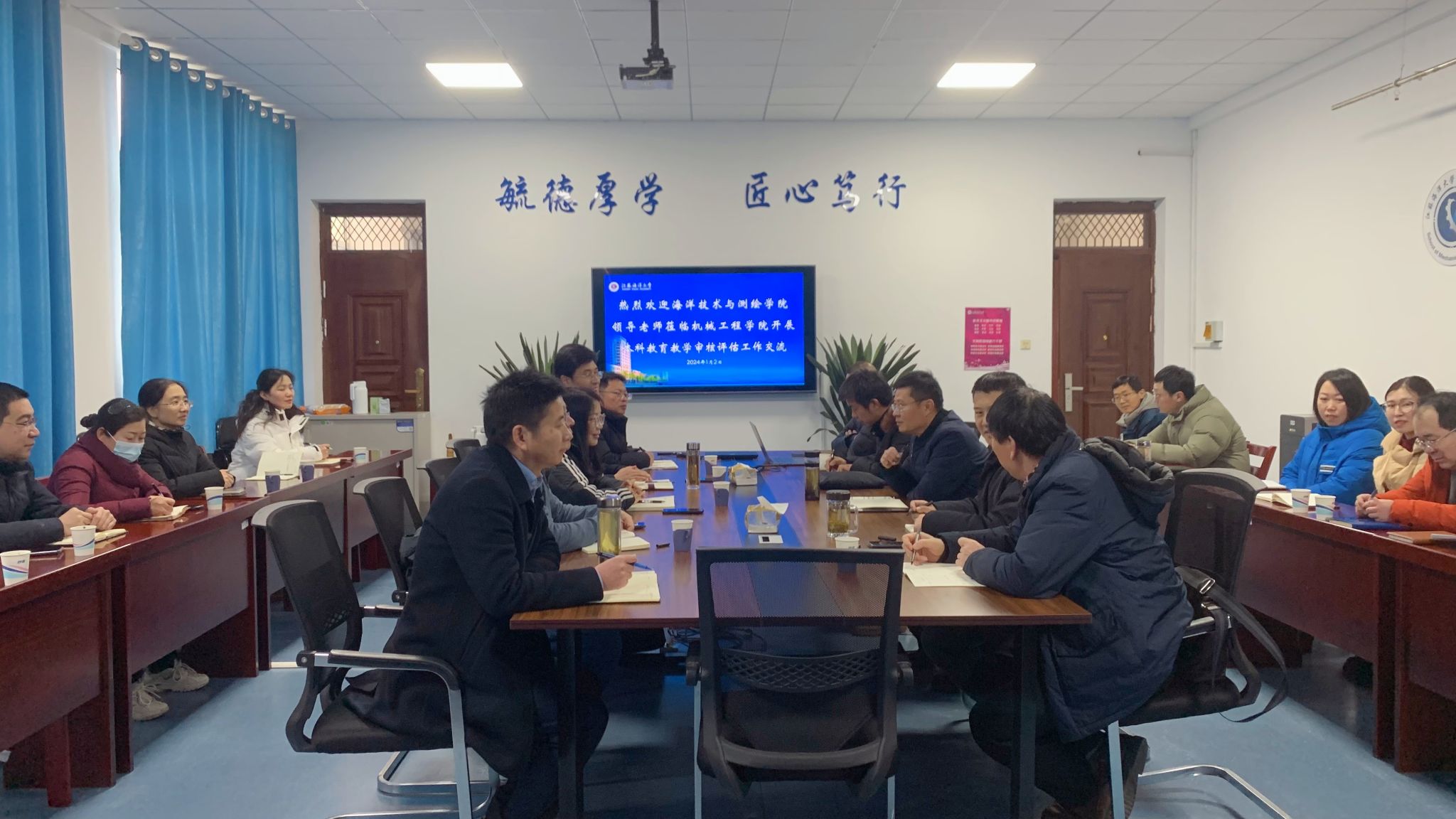 机械工程学院党委书记王秋玉对海测学院一行的到来表示热烈欢迎。机械工程学院副院长丁云飞围绕学院本科教育教学审核评估工作的整体情况、工作经验和做法做了详细介绍。双方与会人员结合分管工作就评估工作的机制建设、教学材料归档的要求和组织实施、电子材料的扫描等相关工作进行了深入交流。随后,海洋技术与测绘学院一行来到机械工程学院的教学档案室,就期末试卷、实习报告和毕业设计等教学归档材料以样本示范的方式进行学习和交流。