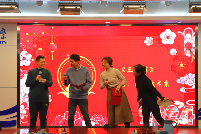 联欢伊始,以表彰先进拉开序幕。学院领导以饱满的热情,为2023年度在教学、科研、社会服务等领域表现突出的教职工、“学习强国”年度总积分前十名的教职工、荣获“最活跃校友”荣誉称号的校友颁奖。凝眸回望,过去的一年里,有挑战,有成长,全体教职工不断追求卓越,也收获了满满的成绩。