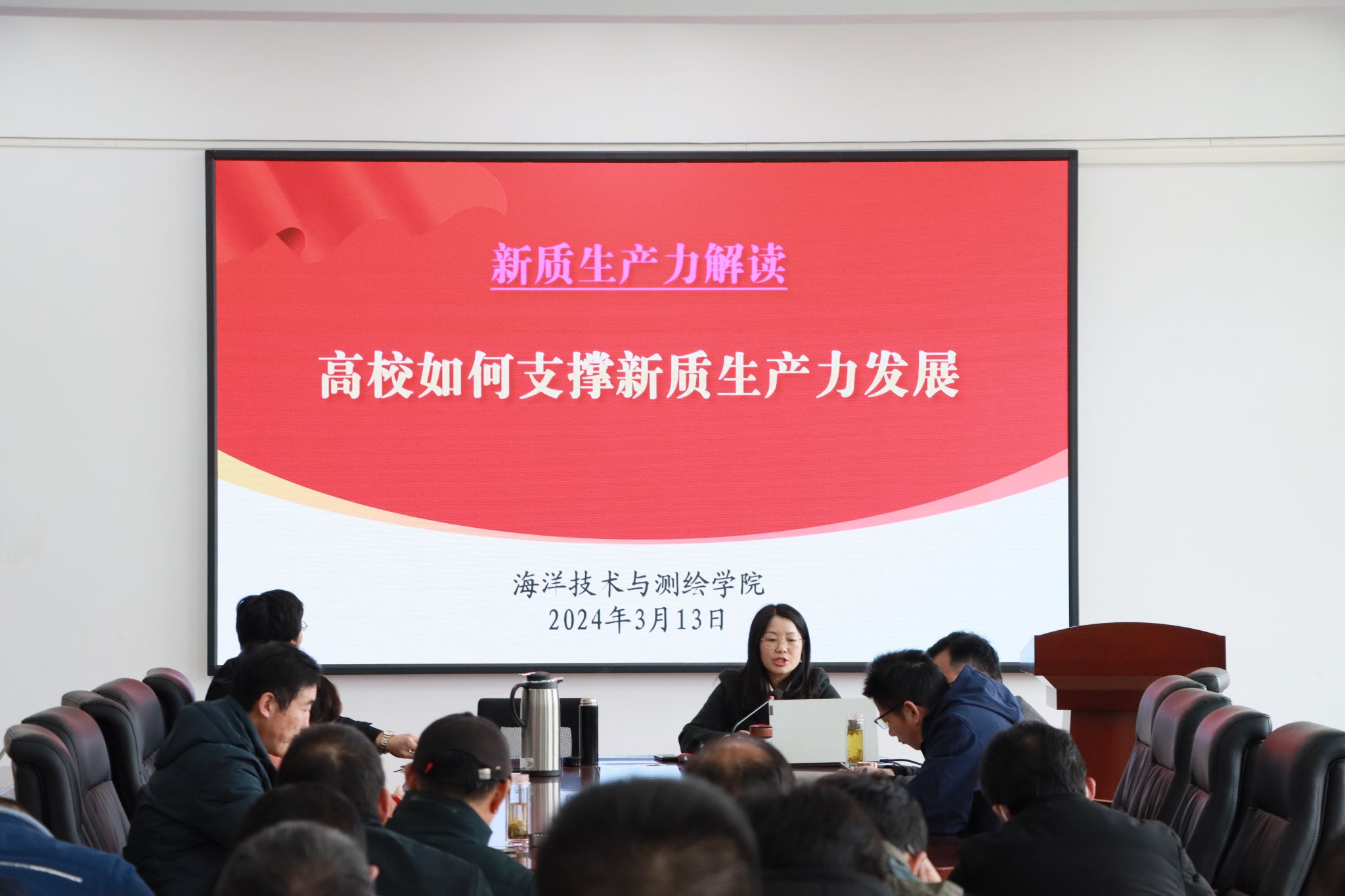 近日,随着2024年全国两会的胜利闭幕,学院内迅速掀起了一股学习两会精神的热潮。为深入领会新质生产力的核心要义,加深对两会精神的理解,3月13日下午,学院在测绘楼508召开全院教职工大会,深入学习贯彻落实2024年全国两会精神及习近平总书记关于加快发展新质生产力,扎实推进高质量发展的重要论述。会议由党委书记王晶主持,全体教职工参加会议。