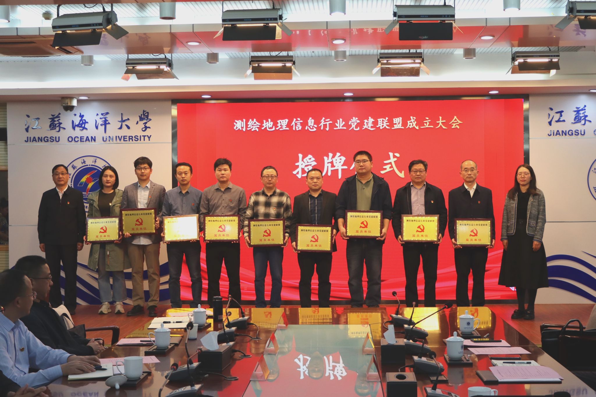 会上举行了测绘地理信息行业党建联盟理事单位授牌仪式。连云港市自然资源和规划局吴铭铭处长和校党委组织部部长陈书法共同为理事单位授牌。