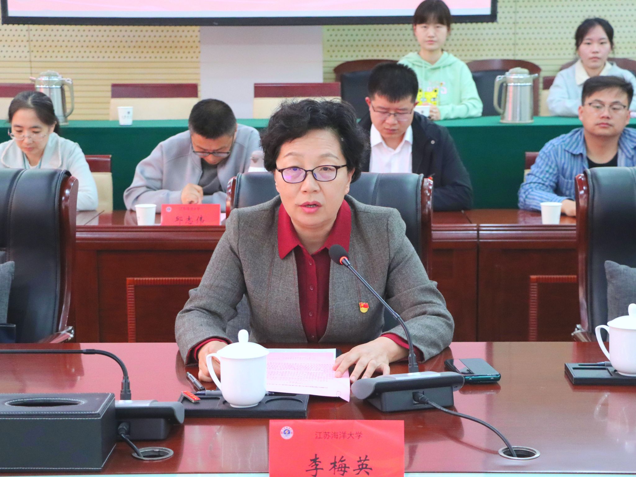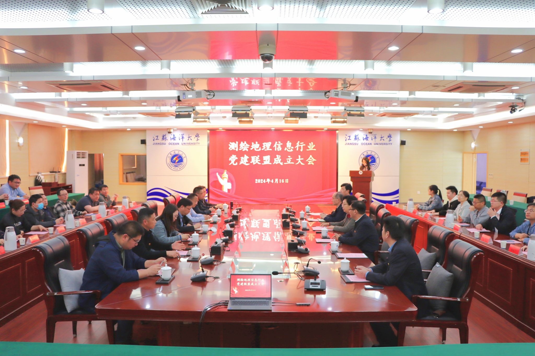 港城四月,雨生百谷,万物逢时。4月16日,测绘地理信息行业党建联盟成立大会在江苏海洋大学隆重举行,这是学校以高质量党建引领推动产教融合发展的又一具体举措。江苏海洋大学党委副书记李梅英出席会议并致辞。大会邀请了连云港市自然资源和规划局、江苏省水文水资源勘测局连云港分局、连云港市气象局、江苏省地质矿产局第六地质大队、江苏省连云港地震台、部分测绘地理信息行业企业的党组织负责人和党务工作者。此外,校党委常委、组织部部长陈书法、校招生与就业处、校友工作处处长、机关党委第十二党支部书记马恒通、海洋技术与测绘学院院长孙佳龙、该院全体党支部书记和部分师生党员代表也参加了会议,会议由海洋技术与测绘学院党委书记王晶主持。