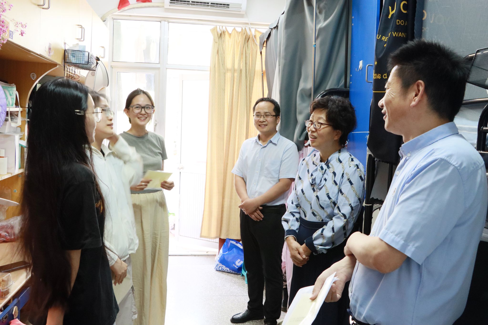 6月7日下午,校党委副书记李梅英走访海洋技术与测绘学院毕业生宿舍,海洋技术与测绘学院党政领导、毕业班班主任、辅导员随行参与走访。