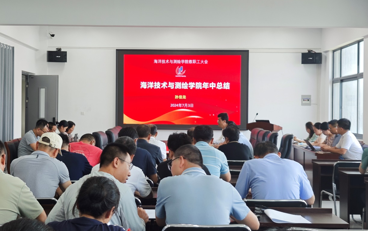 7月3日下午,海洋技术与测绘学院在测绘楼508会议室召开年中工作总结会,会议由院长孙佳龙主持,学院党政领导、全体教职工参会。