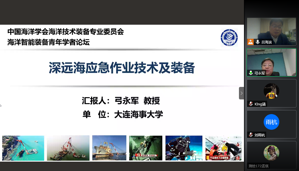 11月19日晚上,大连海事大学弓永军教授应邀在腾讯会议平台为师生做了题为“深海应急作业技术与装备”的学术报告。报告会由副院长吕海滨主持,线上线下参会师生共计120余人聆听了报告。