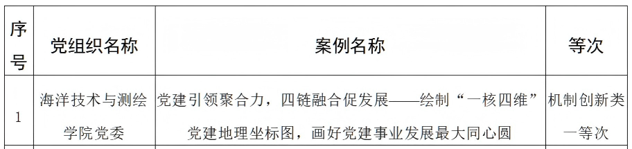 近日,省委教育工委公布了2023-2024年度江苏高校党建工作创新案例名单,学院党委申报的案例“党建引领聚合力,四链融合促发展——绘制‘一核四维’党建地理坐标图,画好党建事业发展最大同心圆”荣获机制创新类一等次。这是我院同时也是我校首获党建工作创新案例一等次。