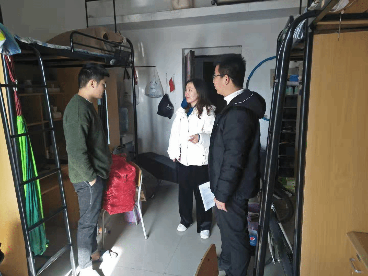 本次检查内容主要包括学生宿舍电源是否切断,晾晒衣物是否收起,门窗是否关闭等。经排查,大部分学生宿舍不存在安全隐患。对于即将离校的同学,老师们除了提醒注意以上问题外,还提醒同学们回家路上注意安全,并预祝大家新年快乐。