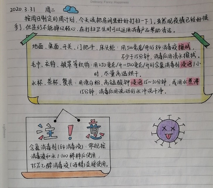 于3月26日-4月7日开展“我的抗疫日记”,主题为“青春战‘疫’,我们在行动”。通过日记的形式,把在抗疫期间自己的所作所为记录下来,形成一个回忆录,同时遵守国家的要求,遵守学院的要求,不外出,不添乱,在家也不忘锻炼身体,同时通过日记记录的方式展示自己的防疫小知识等,通过日记的形式向其他同学分享自己在家的学习与生活,分享有趣的家庭游戏等让大家了解“宅”家抗“疫”新的打开方式。