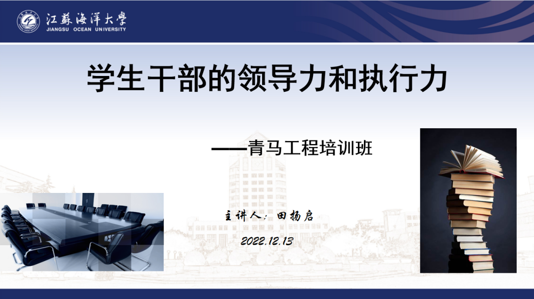 为切实提高学生干部的核心领导力和坚定执行力。12月13日晚,学院第十五期“青马工程”培训班第三课以腾讯会议的形式线上开讲,院党委副书记田扬启作题为《学生干部的领导力和执行力》的专题讲座,“青马工程”全体学员参加会议。
