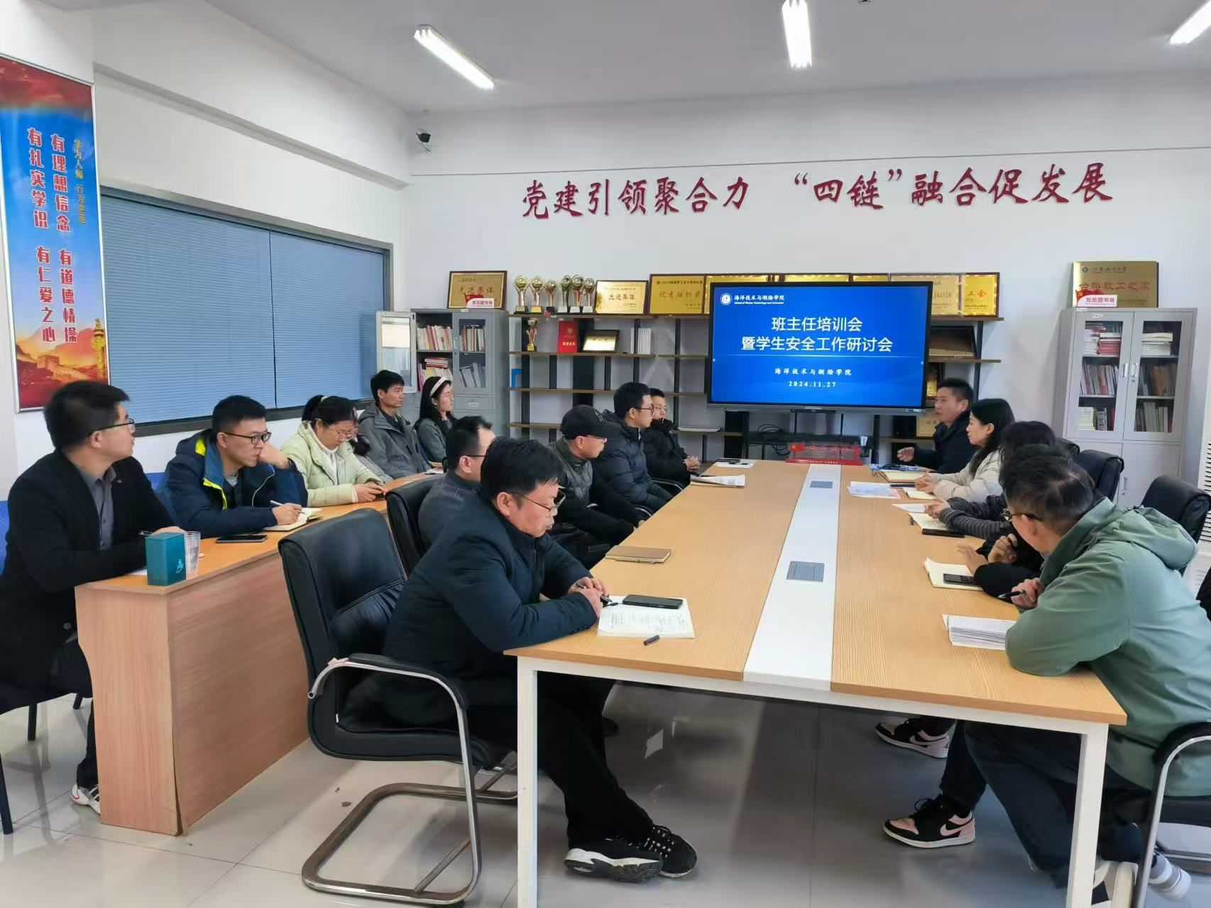 为切实加强班主任队伍建设,强化学院学生工作管理,做好校园安全风险防范工作,筑牢校园安全防线,11月27日,我院召开了班主任培训会暨学生安全工作研讨会。学院党委副书记田扬启、全体辅导员、班主任参加了此次会议。