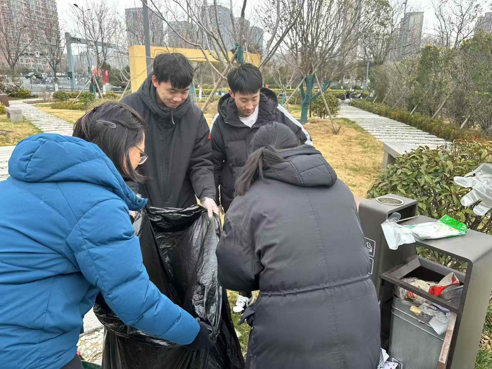活动当日,志愿者们早早集合,带着垃圾夹、垃圾袋等工具来到社区户外区域。尽管天气有些微凉,但大家的热情丝毫未减。在社区工作人员的引导下,志愿者们迅速分散到各个角落,认真清理路面、绿化带、花坛中的垃圾。烟头、废纸、包装袋……都被一一捡起,装进垃圾袋。在清理垃圾的过程中,志愿者们还积极向社区居民宣传环保知识,倡导垃圾分类理念。他们用通俗易懂的语言,向居民们讲解垃圾分类的重要性和方法,引导居民养成良好的环保习惯。
