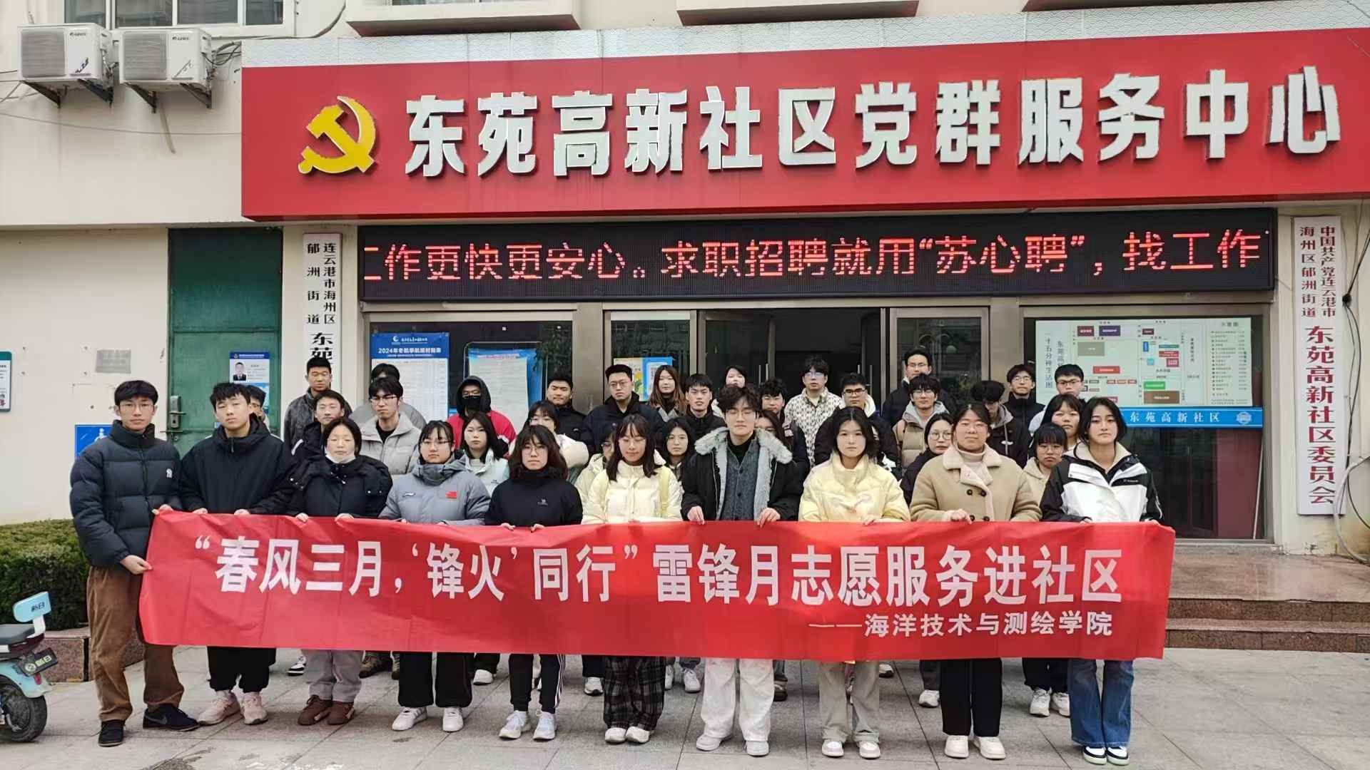 为进一步贯彻落实习近平总书记关于学习雷锋精神的重要指示精神,弘扬奉献、友爱、互助、进步的志愿服务精神。2025年3月5日下午,海洋技术与测绘学院团委组织各团支部志愿者前往郁洲街道东苑高新社区开展了“春风三月,‘锋火’同行”雷锋月志愿服务进社区活动。