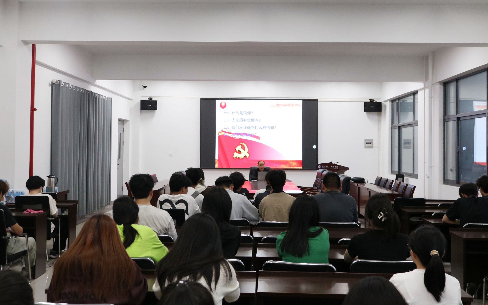 课程伊始,冯凤麟便抛出了“同学们的信仰是什么?”的发问,随后他指出,作为共青团员,我们必须坚定不移地信仰马克思主义,信仰不仅是个人修养的体现,更是集体力量的支撑。冯凤麟接着讲道,信仰的确立并非一蹴而就,而是通过不断学习、思考和实践,逐步形成的。他引用了毛泽东的思想变化历程,讲述了毛主席从青年到老年的心路历程,最终在思想上彻底成为坚定的马克思主义者。