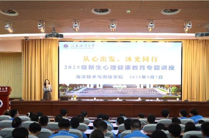 2025年9月7日上午,海洋技术与测绘学院在会议中心黄海厅召开“从心出发,沭光同行”心理健康教育主题讲座。学院学工办主任周琦担任主讲人,2025级全体本科生、研究生参加讲座。