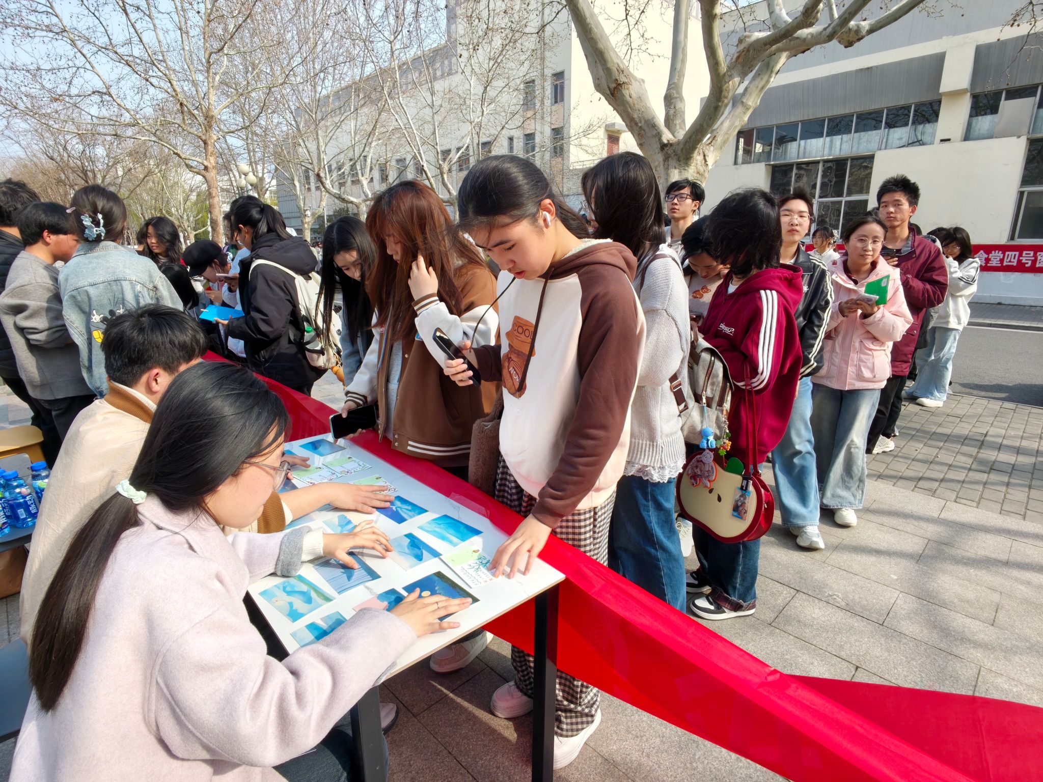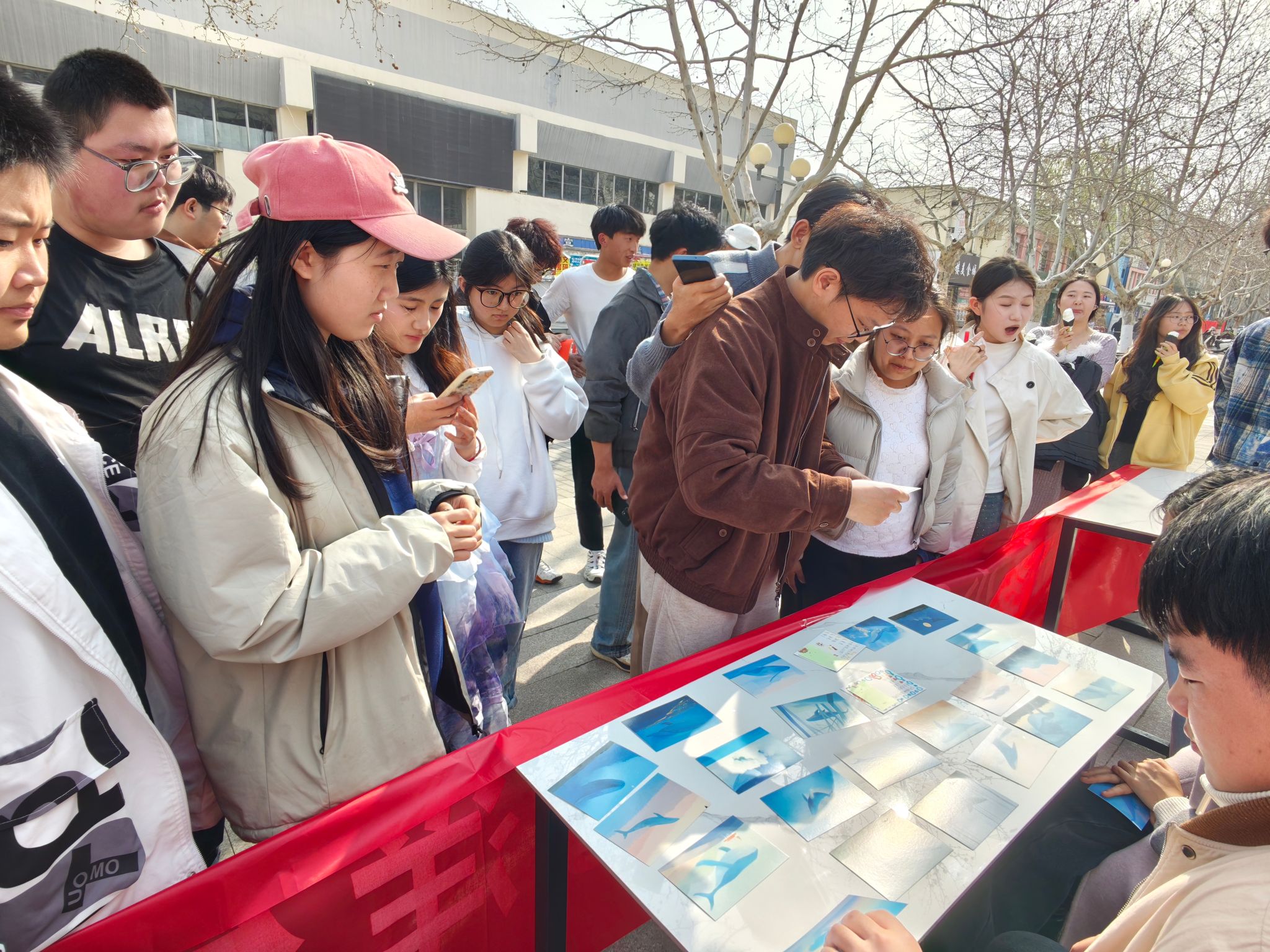 活动现场气氛热烈,同学们通过随机抽取题卡参与答题,内容涵盖海洋生物、海洋地理、海洋资源以及海洋生态保护等多个方面。许多同学结伴而来,在桌前抽取卡片后认真思考,遇到难题时互相启发,碰撞出精彩的思维火花,展现出浓厚的学习兴趣与良好的精神风貌,现场欢声笑语不断,氛围轻松活跃。