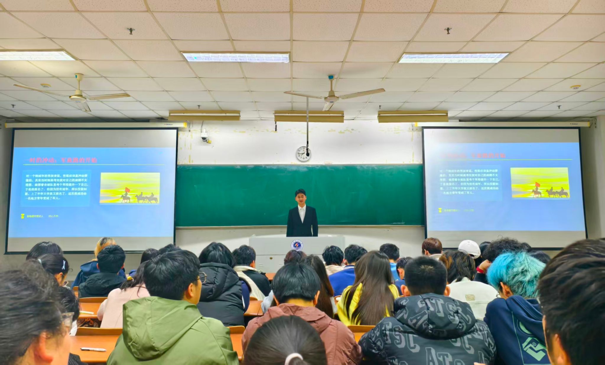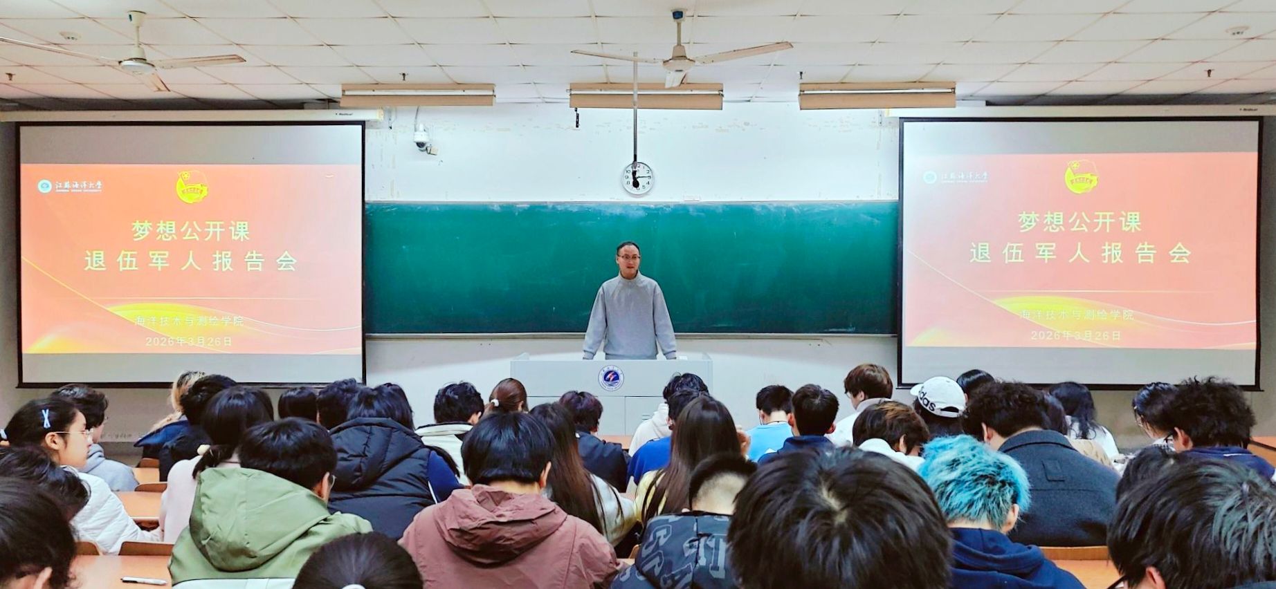 为积极践行社会主义核心价值观,激发广大学生的爱国情怀,3月26日,海洋技术与测绘学院在江苏海洋大学通灌校区至善楼102教室成功举办梦想公开课之退伍军人报告会,2025级全体学生参加活动,辅导员范广主持会议。