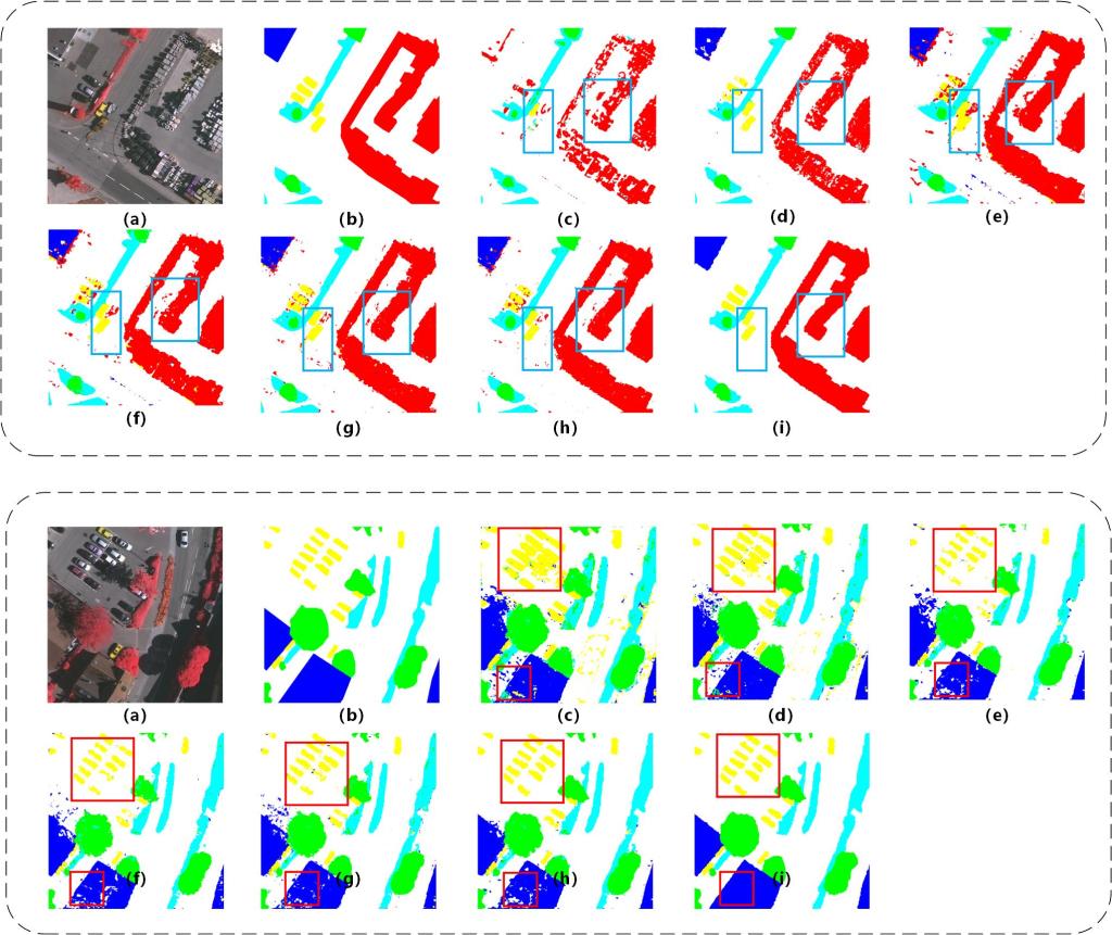 为了提高相邻土地覆盖之间相关性的可区分性并处理高分辨率遥感图像中的边界模糊,本研究实现了一种新的基于端到端的双流图卷积遥感图像语义分割网络模型。首先,基于图的编码器构建地物间像素-超像素依赖关系图,并传播节点定位和特征信息,以扩大遥感影像中地物间差异性。其次,考虑到相同地物的大小、形状千变万化,引入密集连接的空洞卷积神经网络和金字塔结构提取影像中全局与局部的上下文特征信息,以缩小地物类内相似性,进而提取更鲁棒的高层语义特征。最后,针对出现的错分漏分、边界分割粗糙等问题,设计多层级特征融合,综合利用各级信息,提高遥感影像语义分割效果。